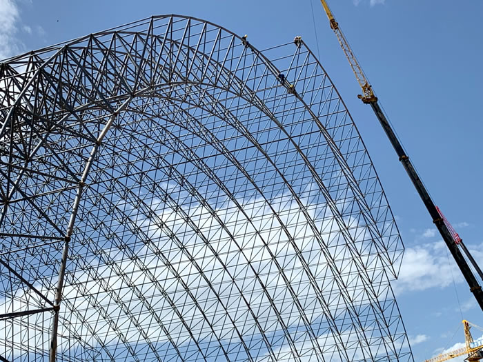 (2)网架加工前应对现场尺寸进行复测,确认无误后方可进行加工、安装;网架制作、运输、安装应遵守《空间网格结构技术规程》JGJ7-2010、《钢网架沛县螺栓球节点》JG/T 10-2009、《钢网架沛县螺栓球节点用高强度螺栓》 GB/T 16939-2016、《沛县钢结构沛县工程沛县施工规范》 GB50755-2012、《沛县钢结构沛县工程沛县施工质量验收标准》 GB50205-2020。